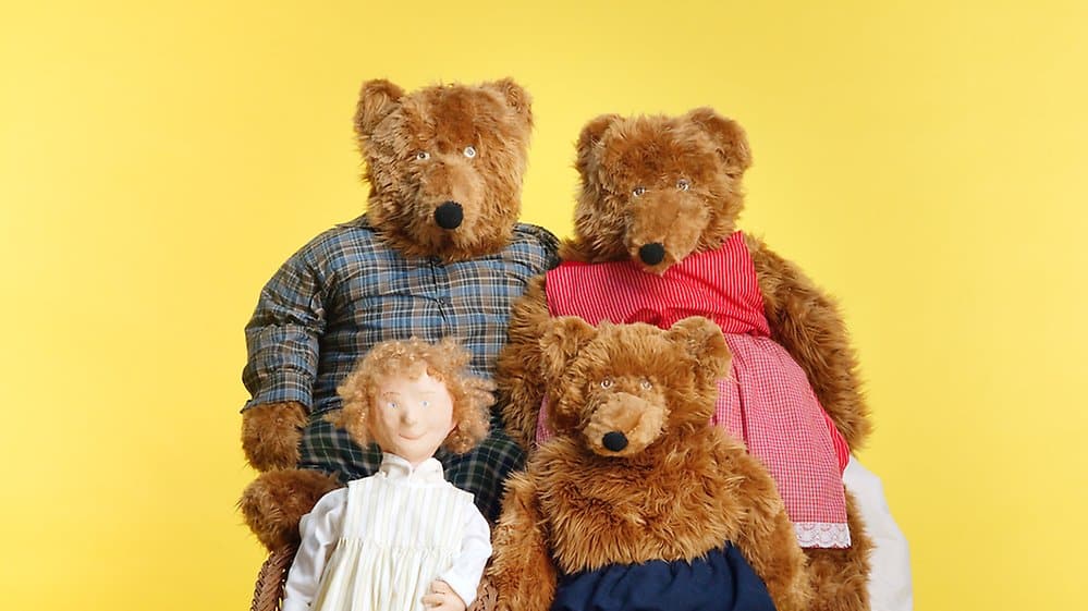 Teater Tummeliten presenterar föreställningen "Guldlock och de tre björnarna" - en kombination av dockteater och dramalek.
