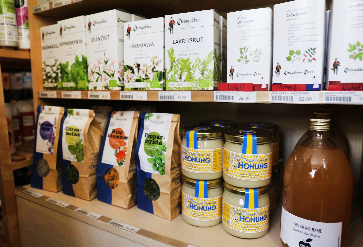 Vi lyfter gärna fram närproducerade produkter, exempelvis Ziiip ekologiskt kaffe, äppelmust från Kängsta och honung från Sorunda.
