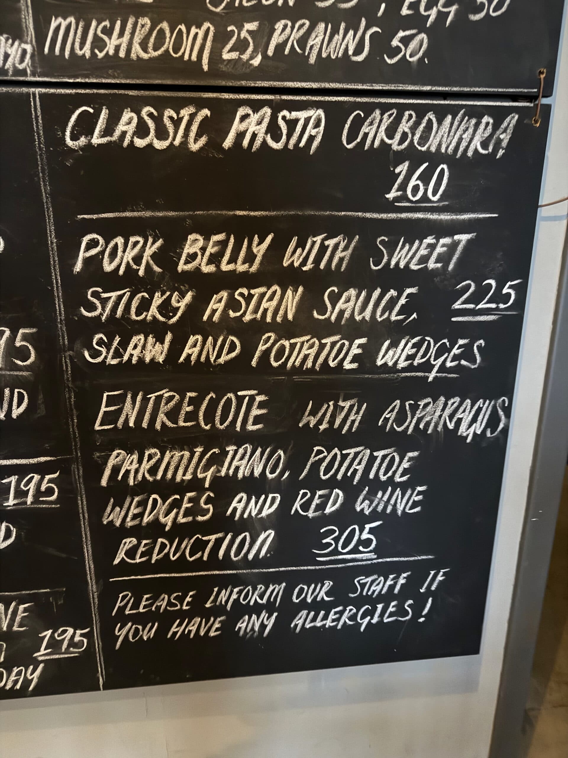 Här hittar du allt från långkokt pork belly med asiatisk glaze till entrecôte med sparris och rödvinsreduktion, krämiga risottos, burgare med personliga twistar och delade charkbrickor.